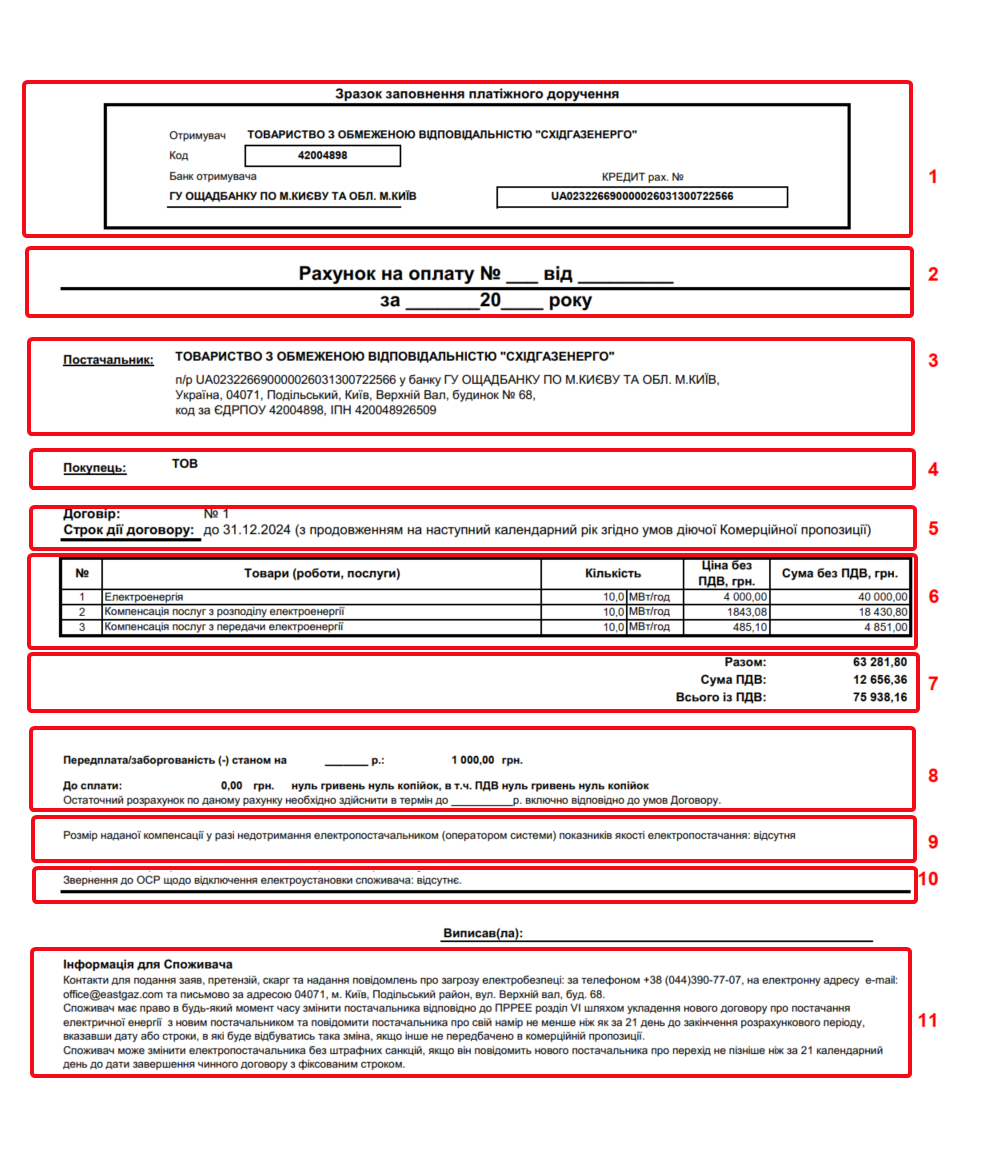 5. Номер, дата та термін дії договору про постачання електричної енергії